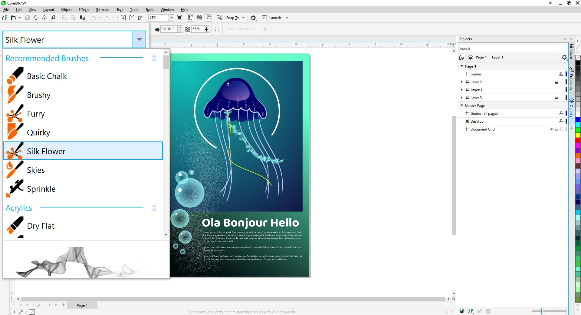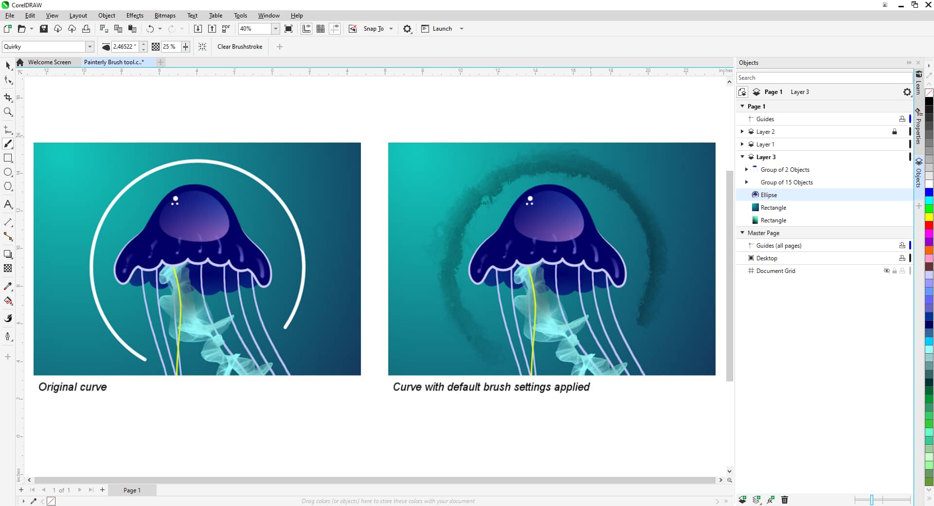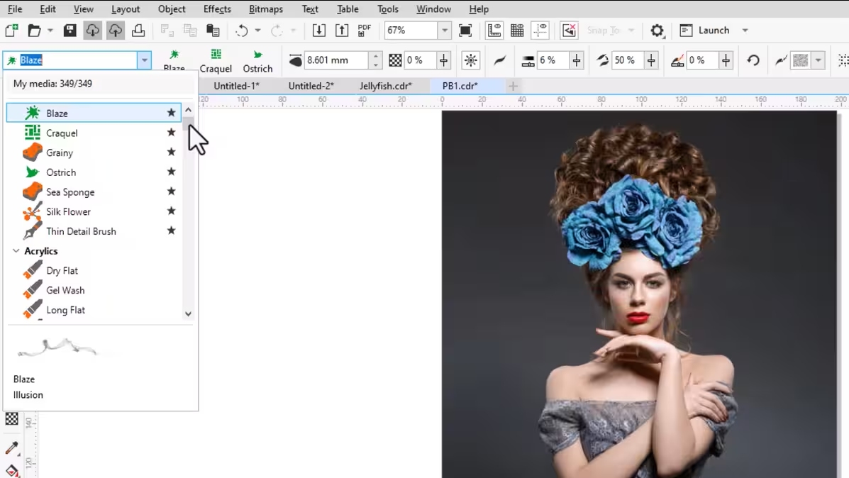 CorelDRAW Graphics Suite 包含 100 多种 Painterly 画笔,另外还为订阅者提供额外的免费画笔。