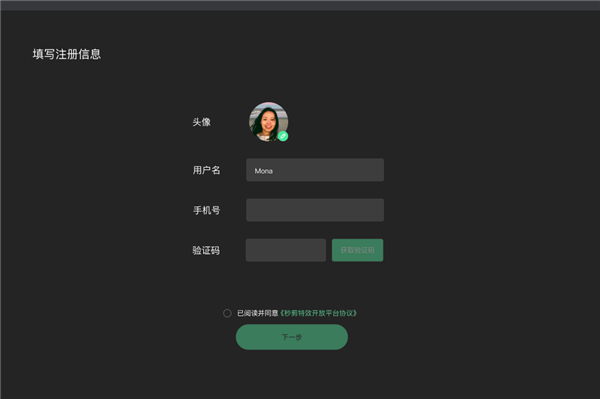 2、根据提示填写注册信息,并绑定视频号 (未绑定视频号将无法发布特效模板)。