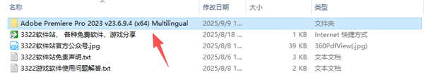 1、下载解压后,进入Adobe Premiere Pro 2023 v23.6.9.4 (x64) Multilingual文件夹当中;