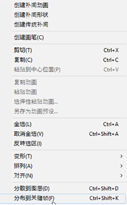 2)右键单击舞台上的任何位置,然后选择“分布到关键帧”。
