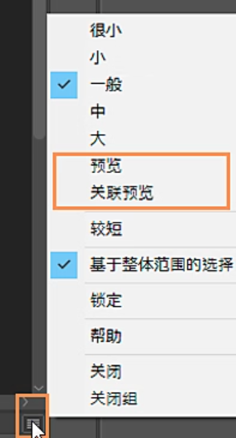 从时间轴面板右上角的时间轴面板选项菜单中选择“预览”。