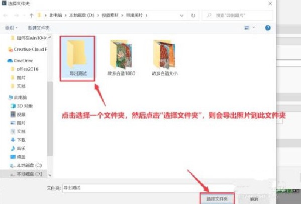 3、点击选择一个文件夹,然后点击“选择文件夹”,则会导出照片到此文件夹。