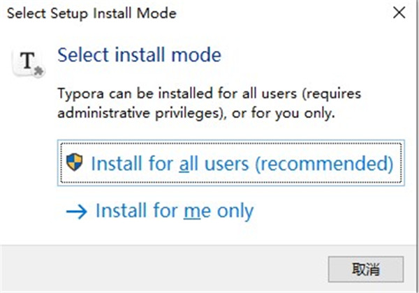 1、在本站下载typora官方版,运行exe文件开始安装,弹窗请选择默认选项