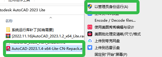1、点击【AutoCAD-2023.1.4-x64-Lite-CN-Repack.exe】以管理员身份运行。
