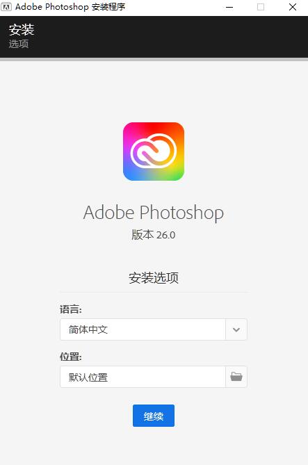 鼠标右键管理员方式运行“Adobe Photoshop 26.0”程序默认安装C盘即可,安装完成即可。