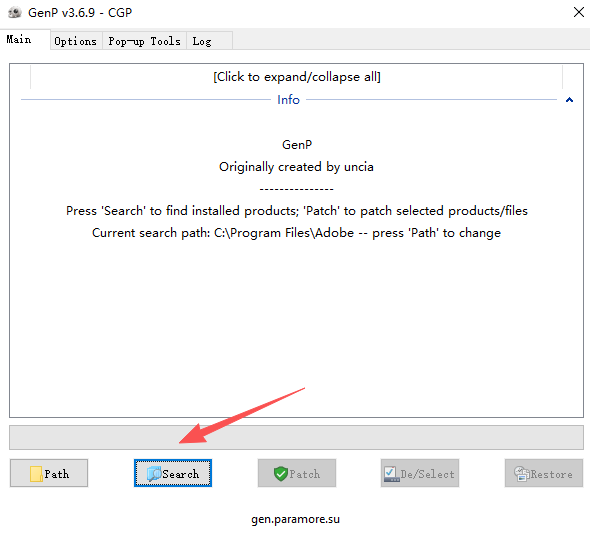 5、解压激活补丁,运行【GenP-v3.6.9.exe】,点击【Search】;