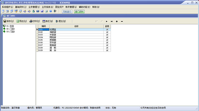 2、完全根据餐饮管理系统的规范进行开发:可管理任意多个营业区域,多个营业时段,餐台、房间分别设置茶位费、服务费,所有餐台、房间可以按照时段独立设置最低消费额,不同包房,设置不同固定房费或计时收费等。