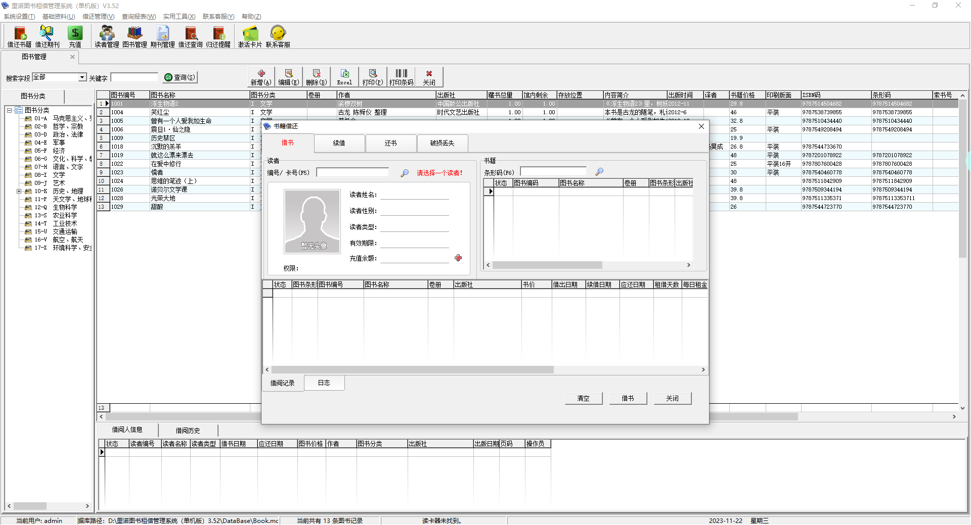 4、进入【读者管理】界面,可进行新增、编辑、删除、分类、查询等相关操作,