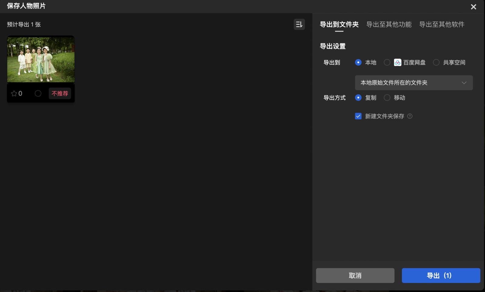导出到其他功能:可以直接把挑选后到照片导入到AI修图、在线选片、AI多人分片中,减少操作步骤
