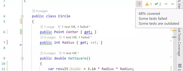 现在,可以使用快捷键直接触发持续测试。 此前,只能通过构建或保存项目来间接执行此操作。 这项功能在带有 ReSharper 的 Visual Studio 和 JetBrains Rider 中均可使用。