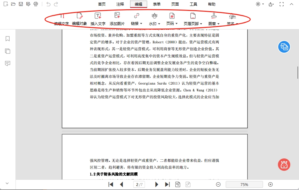 PDFgear提供了丰富的编辑工具,允许用户直接在PDF文档中进行文字、图片和链接的编辑、插入、删除与移动。