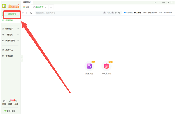 1、打开新榜小豆芽电脑版,点击左上方【添加账号】。