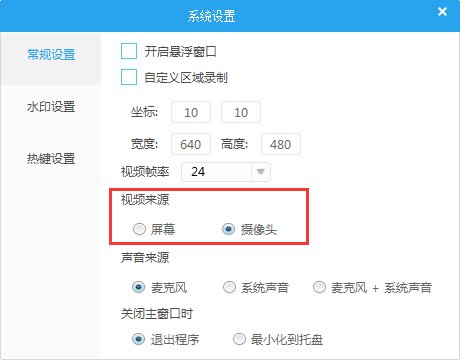 打开设置界面,点击常规设置,选择视频来源为摄像头