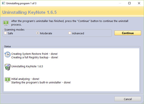 对于需要时间的情况,或者您只是希望自动执行卸载过程,甚至可以连续卸载几个程序,它会提供一个用于快速/多次卸载的命令。在这种模式下,仍会照常运行该程序的内置卸载程序,此后,它还会自动扫描剩余的内容,并在不提示用户的情况下删除找到的所有内容,然后再继续使用该程序的内置卸载程序,队列中的下一个程序(如果有),这样,您只需处理内置的卸载程序,即可快速删除多个程序