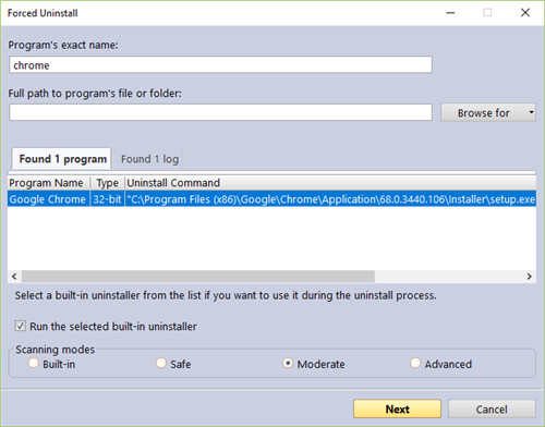 还具有一项非常强大的功能,称为“强制卸载”。此功能使您可以对剩余的文件执行手动扫描,这在程序的内置卸载程序无法正常运行,Revo Uninstaller Pro或Windows的“程序”中没有列出要卸载的程序时非常有用,带有applet的功能,或者在没有协助的情况下希望扫描以前已删除的程序的残余物时使用的功能。强制卸载为用户提供了动力,但仍然保持了安全性和结果的准确性,当安装损坏且无法继续进行时,此功能非常有用,当您必须删除部分安装的程序,部分卸载的程序以及根本没有列出为已安装的程序时,这是最佳解决方案。