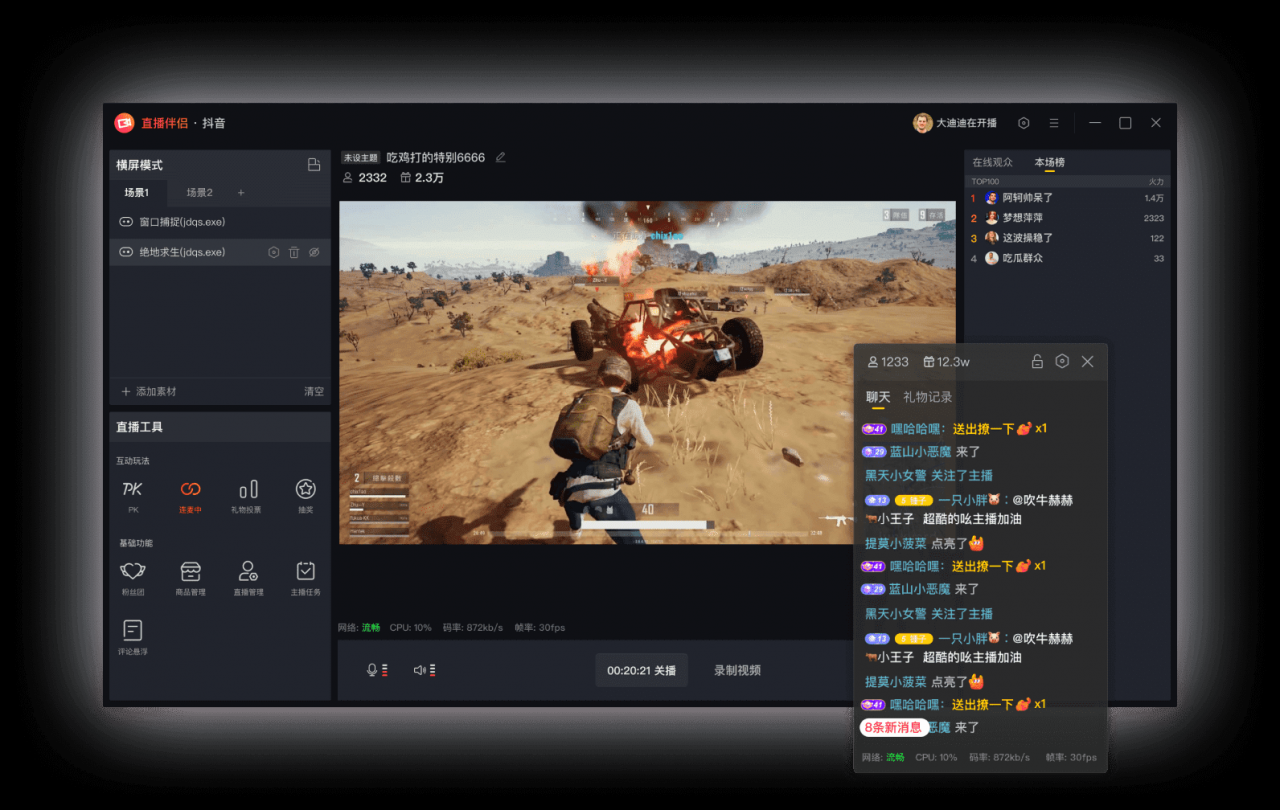 抖音直播伴侣官方版是由第三方平台推出的一款专业的抖音直播辅助工具,专为抖音直播博主打造。本工具可以支持视频直播及录制,只需输入推流地址即可开始直播,软件操作简单,功能非常齐全,同时支持电脑直播,手机直播功能,实时高性能的视频/音频捕捉与混合,以及无限的场景模式使您可以通过自定义实现无缝转换,精简的设置面板用于快速配置您的直播或录制,轻松地在不同的配置之间切换,你还可以选择适合您环境的多个主题,是在PC端上做抖音直播的必备辅助工具。