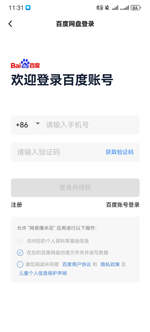 4、以百度网盘为例,输入账号、密码登录百度网盘。