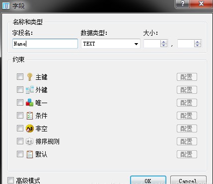 点击“Add columns(Ins)”图标以便添加另外一个列,字段名为Name,数据类型为Text,将非空前的复选框打钩,并点击“OK”按钮,如下图所示: