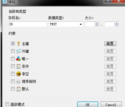 点击“Add column”按钮,添加第一个字段,字段名为ID,数据类型为Text,将主键前的复选框打钩,并点击“OK”按钮,如下图所示: