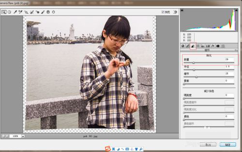 5、我们要 借助 camera raw 很好用的一个功能,镜头矫正功能。设置如图。在颜色中勾选一下,删除色差,非常轻松的纠正镜头扭曲的问题。