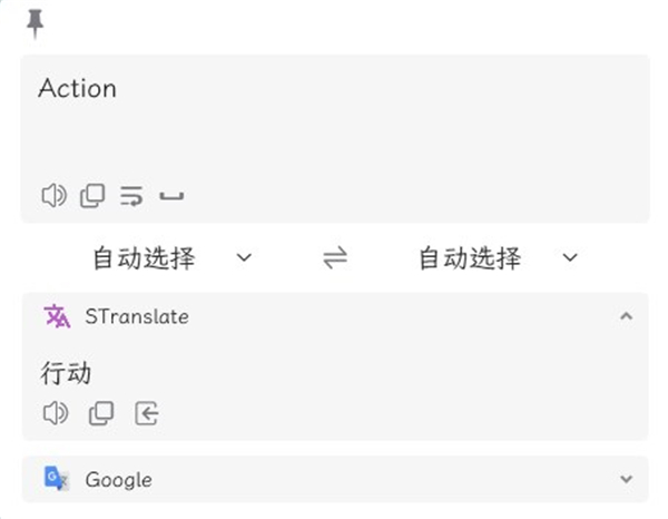 2、软件界面默认显示两种翻译结果,可以查看STranslate、Google翻译结果。