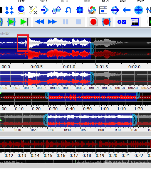 我们先在GoldWave中找到需要保留的部分,大概在哪个位置,然后点击上方的“剪刀”,把这一段截取下来。这里有一个小细节,如果你需要的那段音频非常短,可以点击GoldWave主页面上方的“放大”键,放大波形哦!截取音频之后,点击上方的“剪切”。
