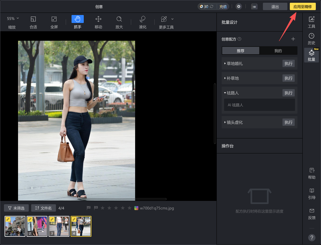 6、最后点击屏幕右上角的的“导出至精修”即可。