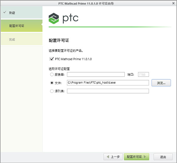 9、在Mathcad Prime 11.0 启动时,会在 PTC Mathcad 许可证向导中询问是否获得许可: