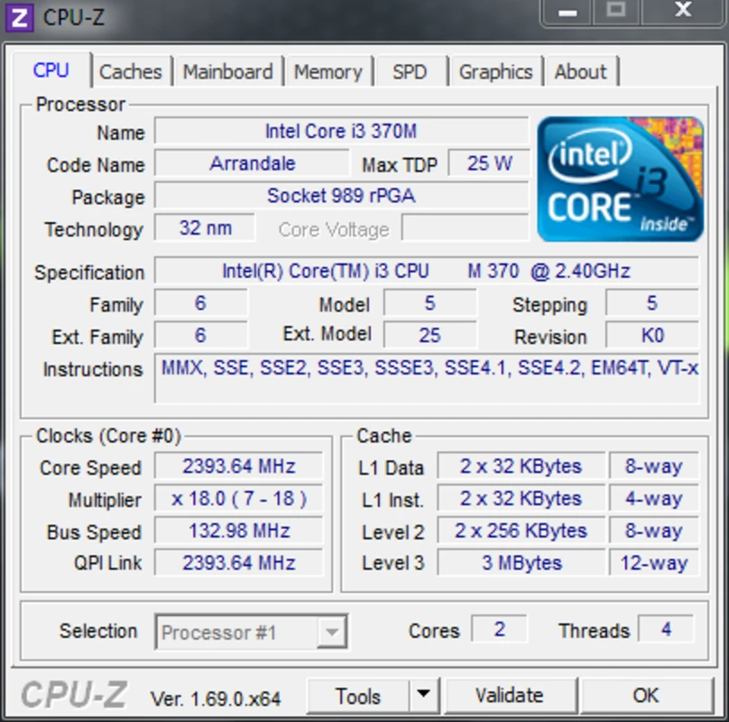 CPU-Z Portable 不需要安装:只需执行它,一个窗口就会打开,包含电脑的所有数据。从CPU版块中,你可以查看处理器的信息,包括技术规格,速度,还有电压。你还可以查看主板信息,制造商,以及BIOS版本,显卡,内存品牌,Windows 和 Direct X 的版本。