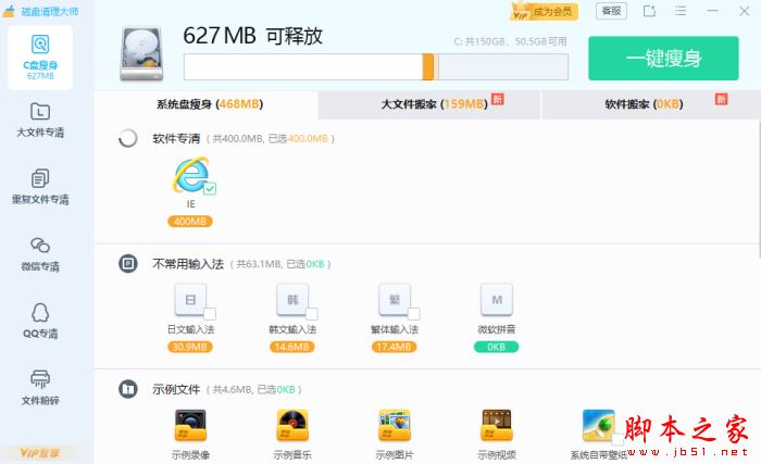 磁盘清理大师一款为用户提供C盘瘦身、大文件专清、重复文件专清、微信\QQ专清、文件粉碎等功能的PC电脑系统清理工具