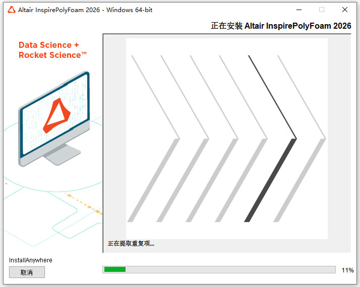 4、双击文件AltairInspirePolyFoam2026_win64.exe安装软件,正在提取中;