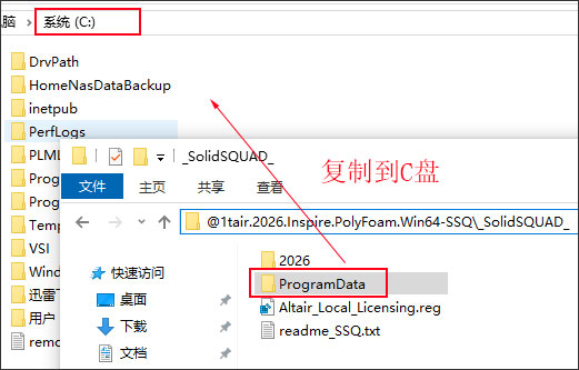 2、将_SolidSQUAD_激活文件解压出来,复制ProgramData文件夹到c盘替换【ProgramData属于隐藏文件夹】;
