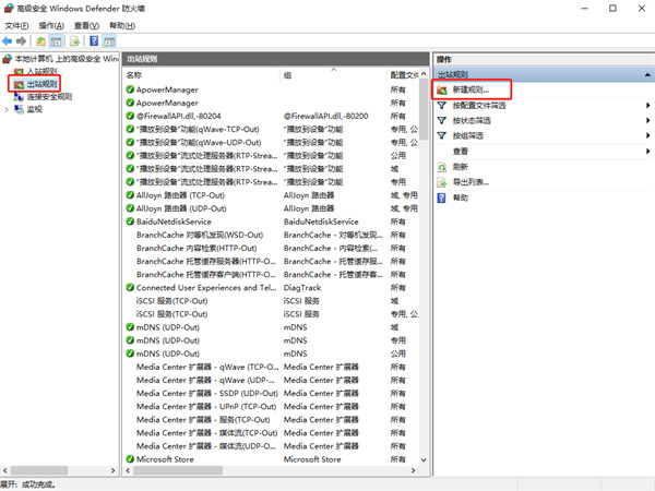 3、在防火墙设置里面点击“高级设置”,之后在左边的侧栏里面选中“出站规则”;