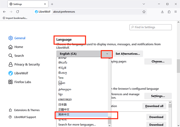 LibreWolf浏览器如何设置中文语言