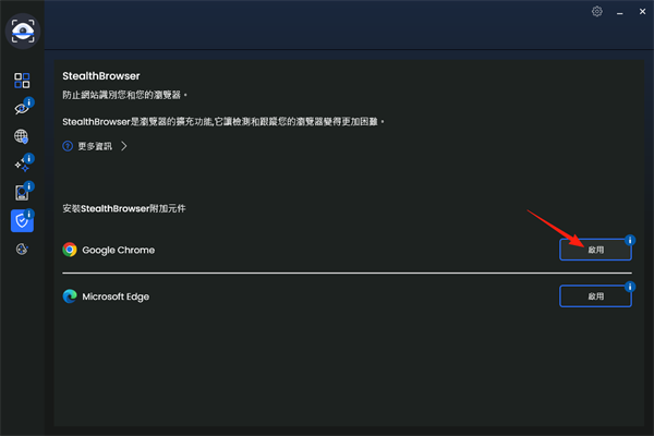 2、随后选择所需要保护的浏览器,点击红箭头处的“启用”即可。