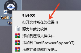 10、鼠标右击AntiBrowserSpy软件图标,打开文件所在位置。
