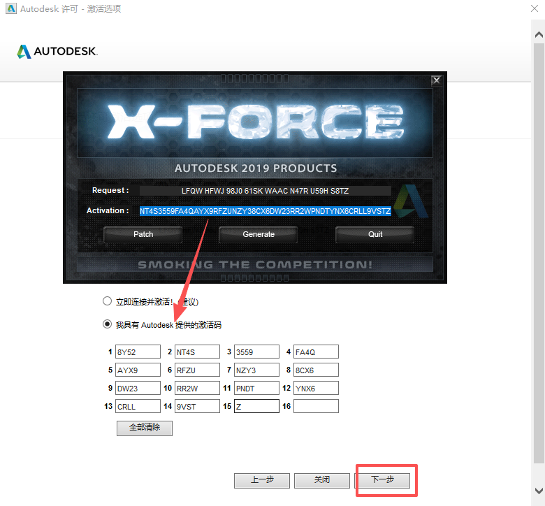 20、将生成的激活码复制到我具有Autodesk提供的激活码中,点击下一步。