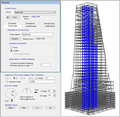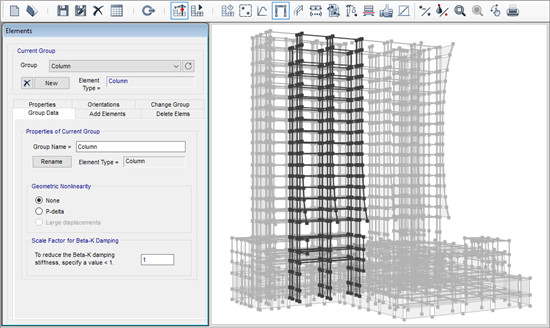 在Perform3D中,框架视图可用于通过仅显示结构的选定部分来简化和组织结构的显示和定义。您可以在定义模型时在完整结构视图和仅显示框架视图中的元素的视图之间快速切换。