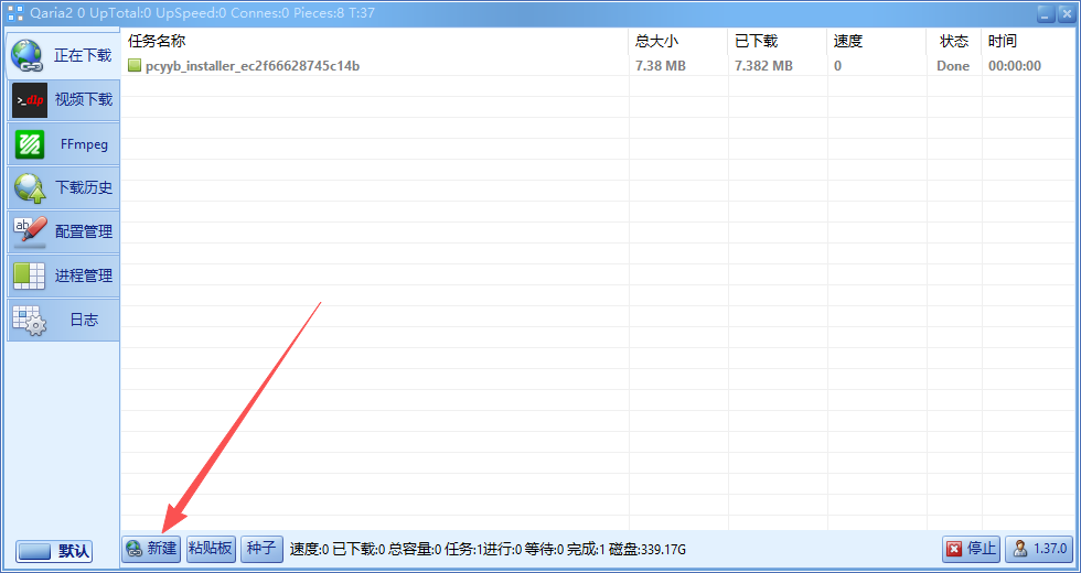 1、点击Qaria2主界面下的新建按钮。