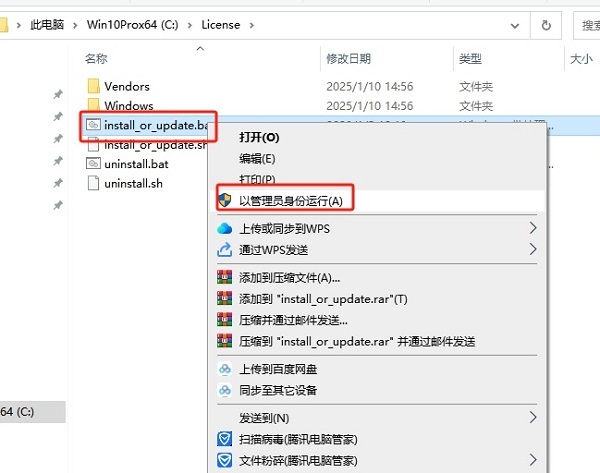 7、打开License文件夹,选择【install_or_update.bat】鼠标右键以管理员身份运行。