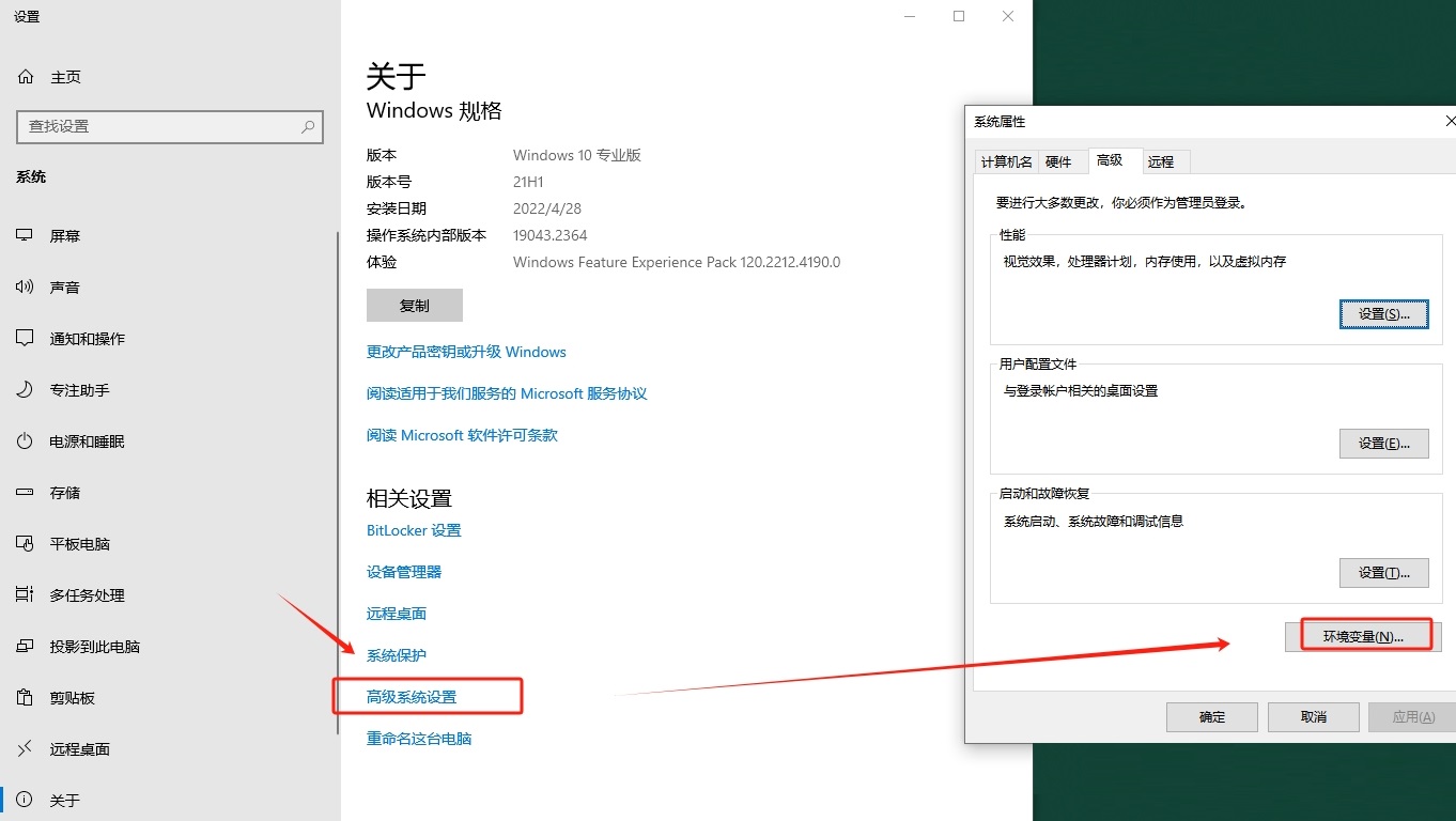 9、点击打开电脑的【高级系统设置】-【环境变量】。