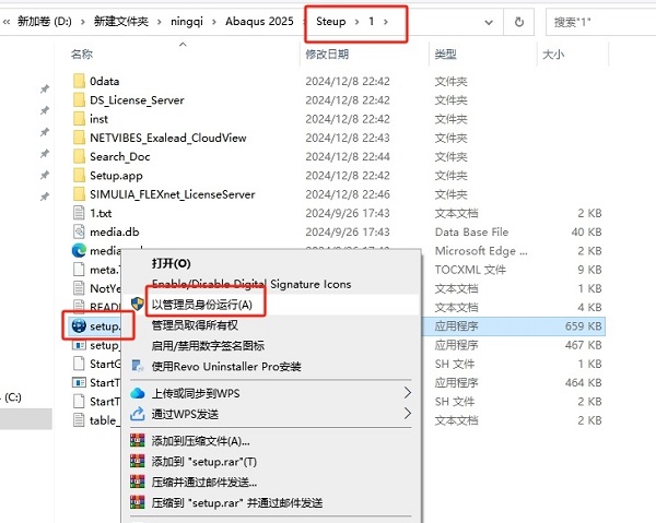 11、打开安装包Setup-1文件夹,选择【setup.exe】鼠标右键以管理员身份运行。