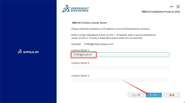 21、输入许可证服务名称:27800@localhost,点击【下一步】。