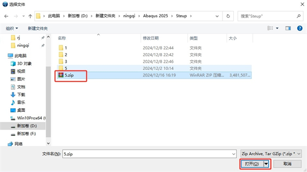 42、弹出对话框,选择Setup文件夹里面的5.zip压缩包打开。