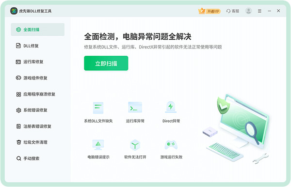 虎先锋DLL修复工具是一款DLL修复/DirectX修复神器,它可一键修复因DLL文件缺失、损坏或DirectX组件错误导致的各类问题,例如软件程序无法启动、游戏崩溃、系统卡顿或弹出错误提示等等。