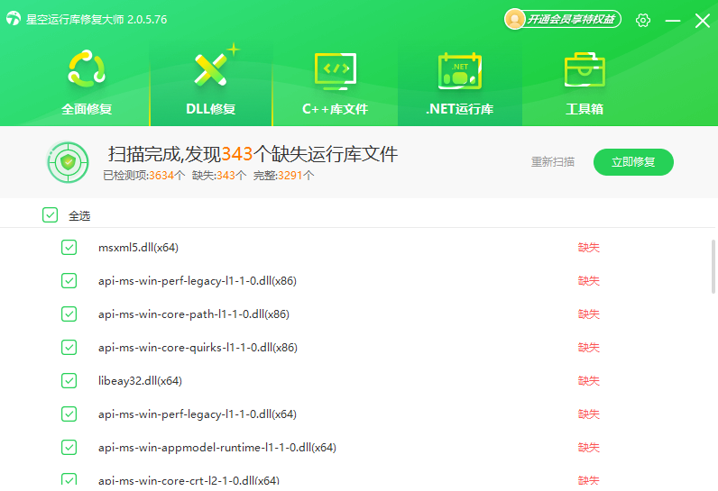 星空运行库修复大师怎么恢复丢失的dll文件?