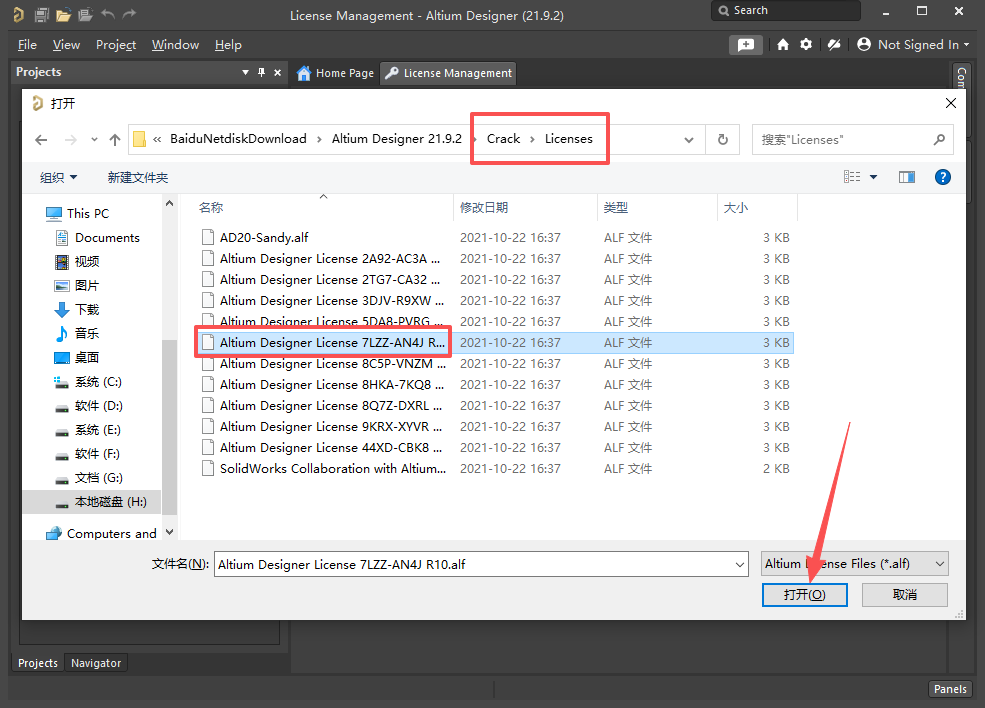 13、打开【Crack——Licenses】文件夹,选择任意一个文件,点击【打开】。