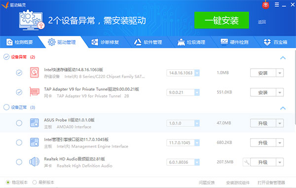 操作系统补丁没打齐?缺少各种.Net、VC运行库致使程序无法运行?驱动精灵可让您的系统安全稳定,功能完备。