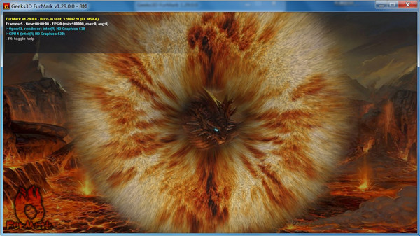furmark是oZone3D团队开发的一款以OpenGL为基准的显卡测试工具,它提供了多种测试选项,例如全屏/窗口显示模式、预设常见分辨率、基于时间或帧的测试形式、多种多重采样反锯齿(MSAA)、游戏模式等,并且采用皮毛渲染算法来衡量显卡性能,还支持单卡/多卡烤机模式,主要用于测试NVIDIA GeForce/AMD Radeon/Intel HD Graphics 的显卡满血负载下的CPU负载频率和功率及温度。