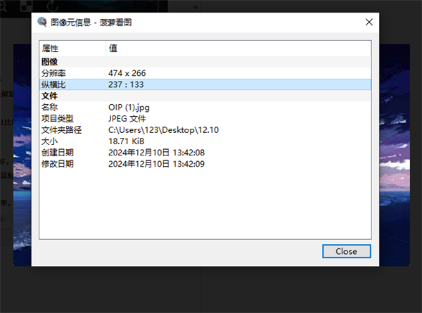 4、右键单击图片→属性,可以查看图片的一些信息,包括分辨率,文件大小,路径,日期等。